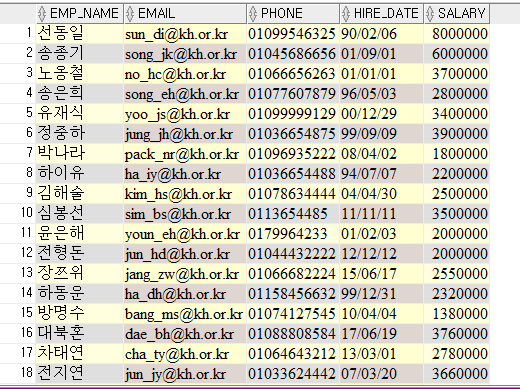 SELECT EMP_NAME AS "사원명", SALARY AS "급여", '원' AS "원"